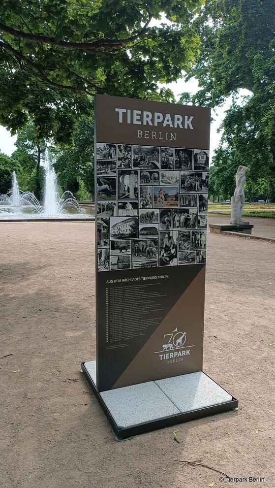 Bei einem nostalgischen Rundgang durch den Tierpark lässt eine historische Fotoausstellung unter freiem Himmel Erinnerungen wach werden. Entlang der Kamelwiese präsentieren acht Jubiläumsstelen knapp 600 zum Teil bisher unbekannte Aufnahmen aus dem Archiv des Tierpark Berlin.