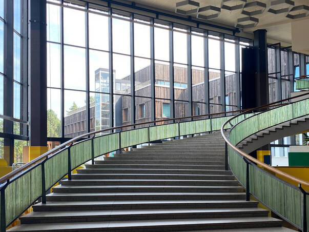 Das Gebäudeensemble besteht aus einem zentralen Foyer mit unterschiedlichen