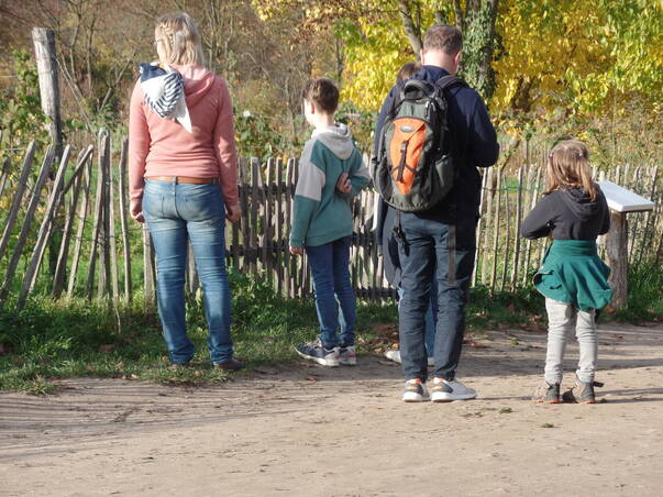 Informationstafeln versorgen Interessierte auf ihrem Spaziergang durch Felder und Weideflächen mit Wissenswerten über Tiere, Pflanzen, Pflege und Anbau.