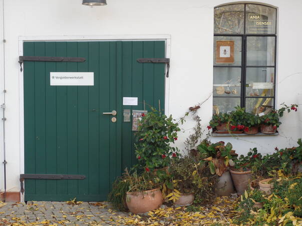In den historischen Gebäuden finden auch verschiedene Ateliers Platz: Die Hofschmiede Dahlem und die Töpferei, auch eine Vergoldermeisterin und eine Faßmalerin sind hier zu finden. Die Kunsthandwerkerinnen verkaufen ihre Produkte vor Ort, zu den Öffnungszeiten kann man auch einen Blick in die Werkstätten werfen.